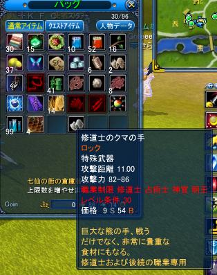 先日熊の手をゲットしたあと奇人クエの麺棒もゲットし