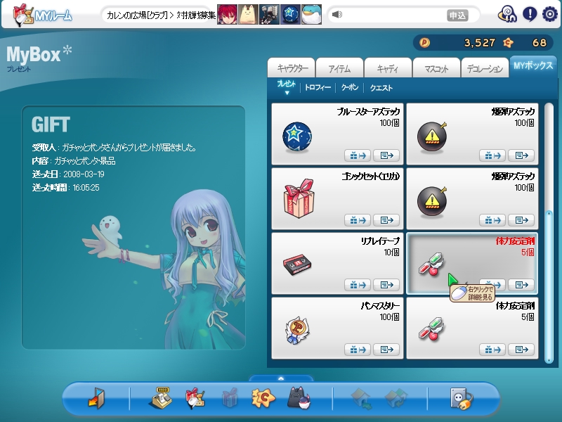 そしてガチャ補助権にするためにアイテムボックスからマイルームに移動させた際3~4回以上アイテムが移動せず噴出・・・