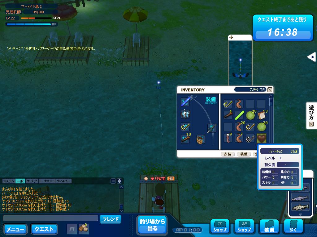 20レベルになったので竿、針、浮きを交換ーv